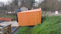 I also set out the rest of the beds along the path with my neighbour so I could see where the greenhouse fruit cages will be. The compost I brought with me went into Dalek 1 and a layer of shredded paper on top to keep the warmth in and the worms happy.
